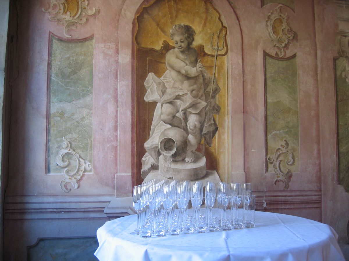 Der barocke Festsaal und zwei weitere stilvoll möblierte Räume laden zum Foografiern ein. Spiegel, Flügel, historischer Kamin etc. ...